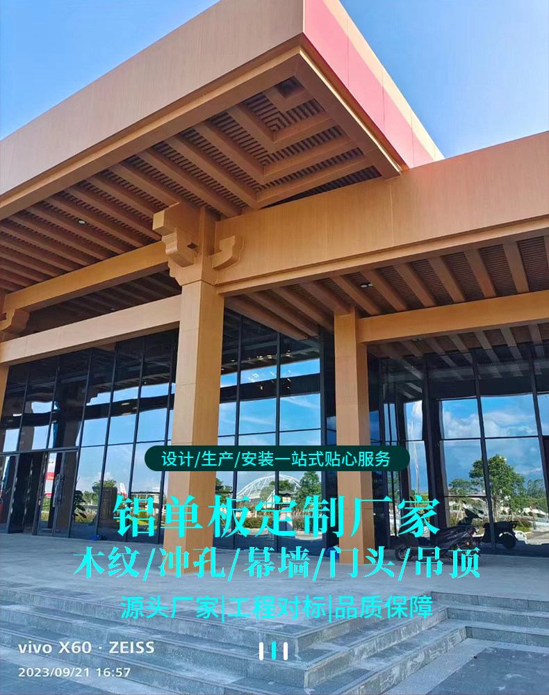 木纹转印铝单板铝方通方管2mm3mm厚吊顶门头包柱幕墙造型冲孔定制